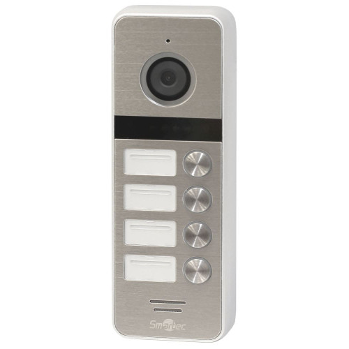 Вызывная панель Smartec ST-DS546C-SL на четыре абонента управляет электрозамком с NO или NC контактами. Оснащена цветной камерой (разрешение 600 ТВЛ, 1/3" CMOS-сенсор, объектив 1.9 мм с углом обзора 130º).